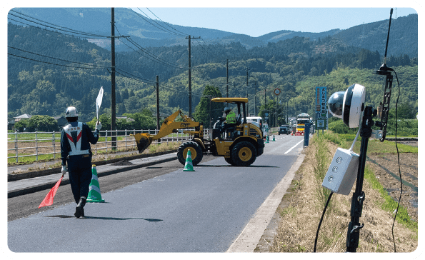 大雨や地震など緊急復旧が必要な現場では、警備員の即時確保が困難な場合も。KB-eyeは即時設置・即稼働が可能で、災害現場での安全確保に貢献しています。